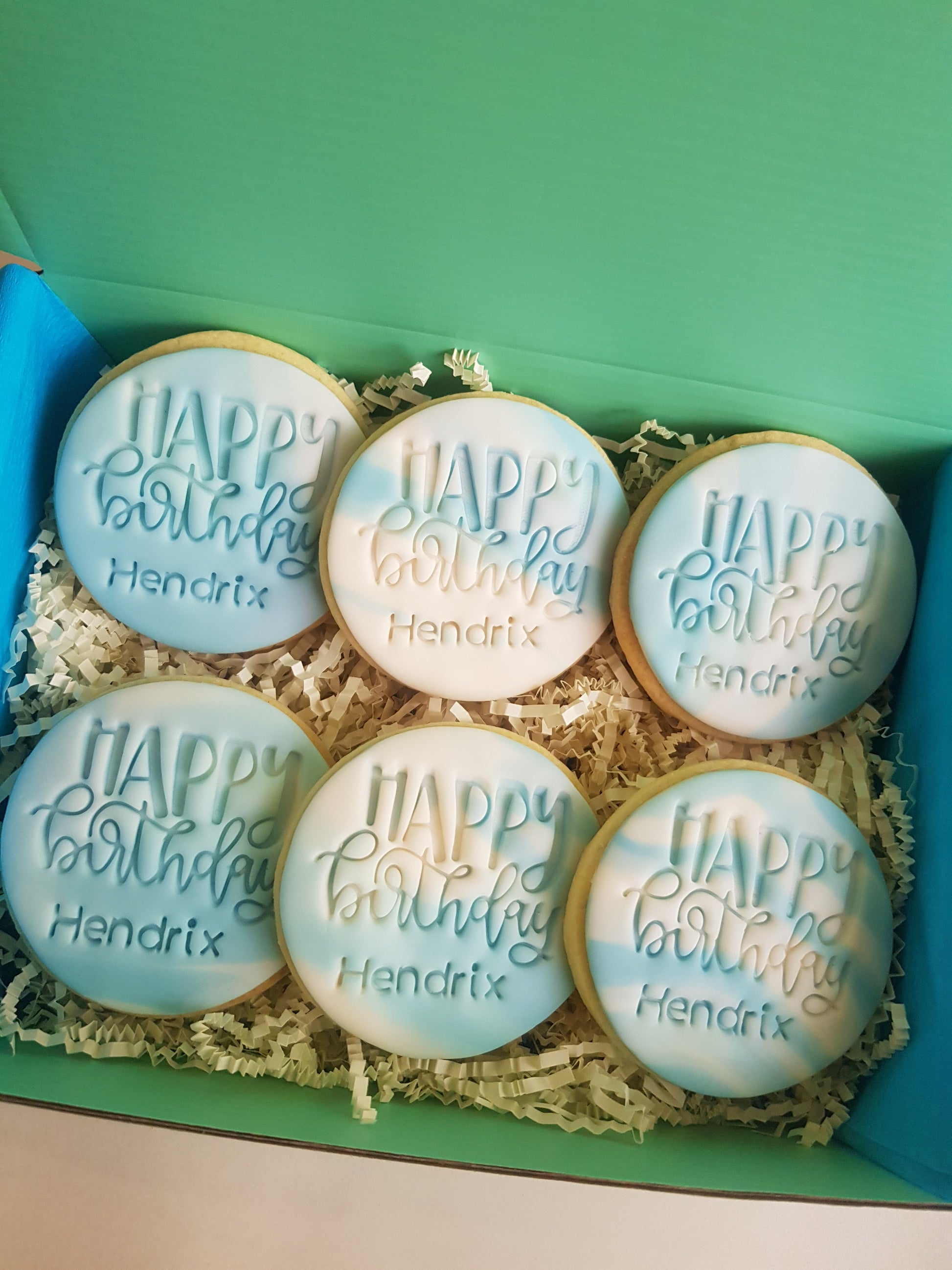 Please mention in the notes section at checkout if you wish to personalise your cookies with a name, and what colour you'd like them to be. Choose any colour combination you like!